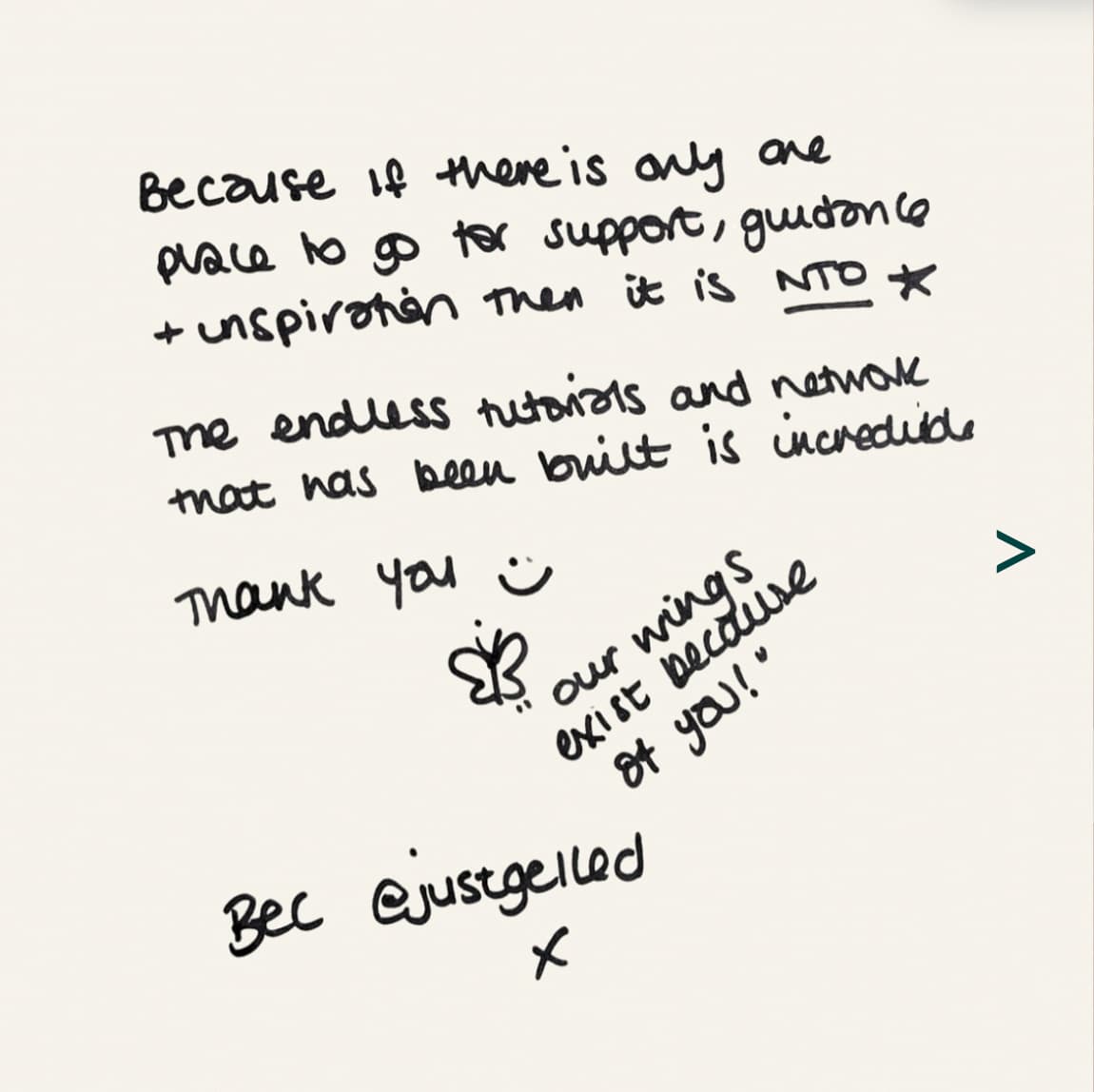 When the pandemic hit, everything changed. Overnight, nail techs all over the world saw their livelihoods snatched away, leaving many feeling lost and scared for their future. They turned to social media to connect with others going through the same thing, and I saw so many nail techs struggling – not just financially, but emotionally (myself included). Our work may have been taken from us, but our passion was stronger than ever, and something incredible started to happen. We were coming together, supporting one another, and lifting each other up in ways the industry hadn’t seen before. Instead of competing, we were connecting, cheering each other on, and building a sense of community. It showed me that what we can achieve together, far outweighs anything we can achieve alone.